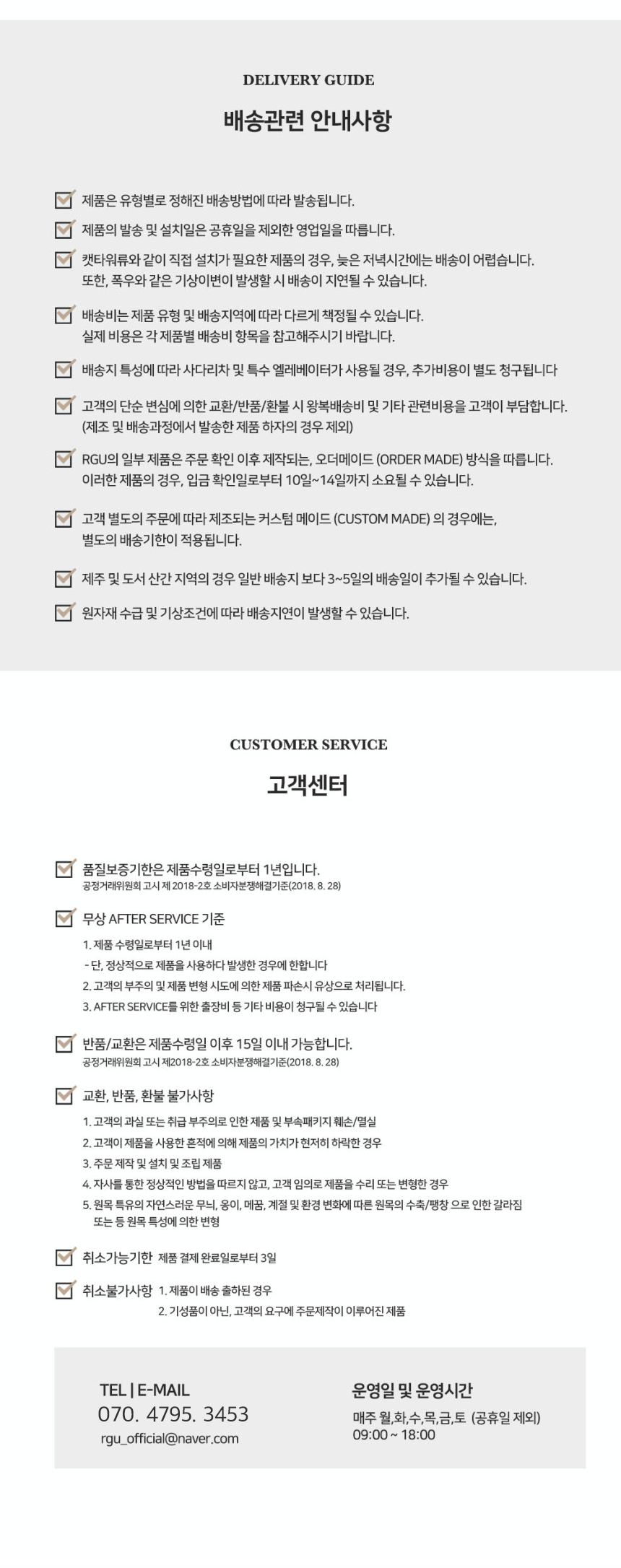 - 교환, 반품, 취소는 마이페이지 > 나의 상품 문의 게시판을 통해 접수 부탁드립니다.