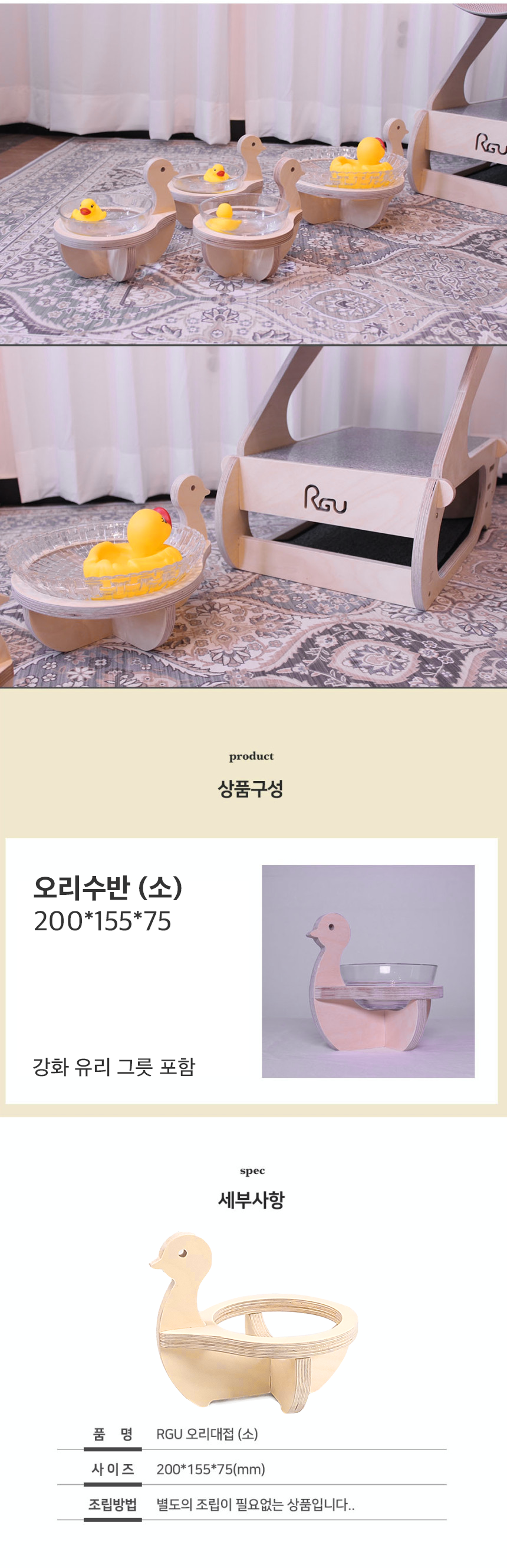 RGU 원목 오리 수반 소형