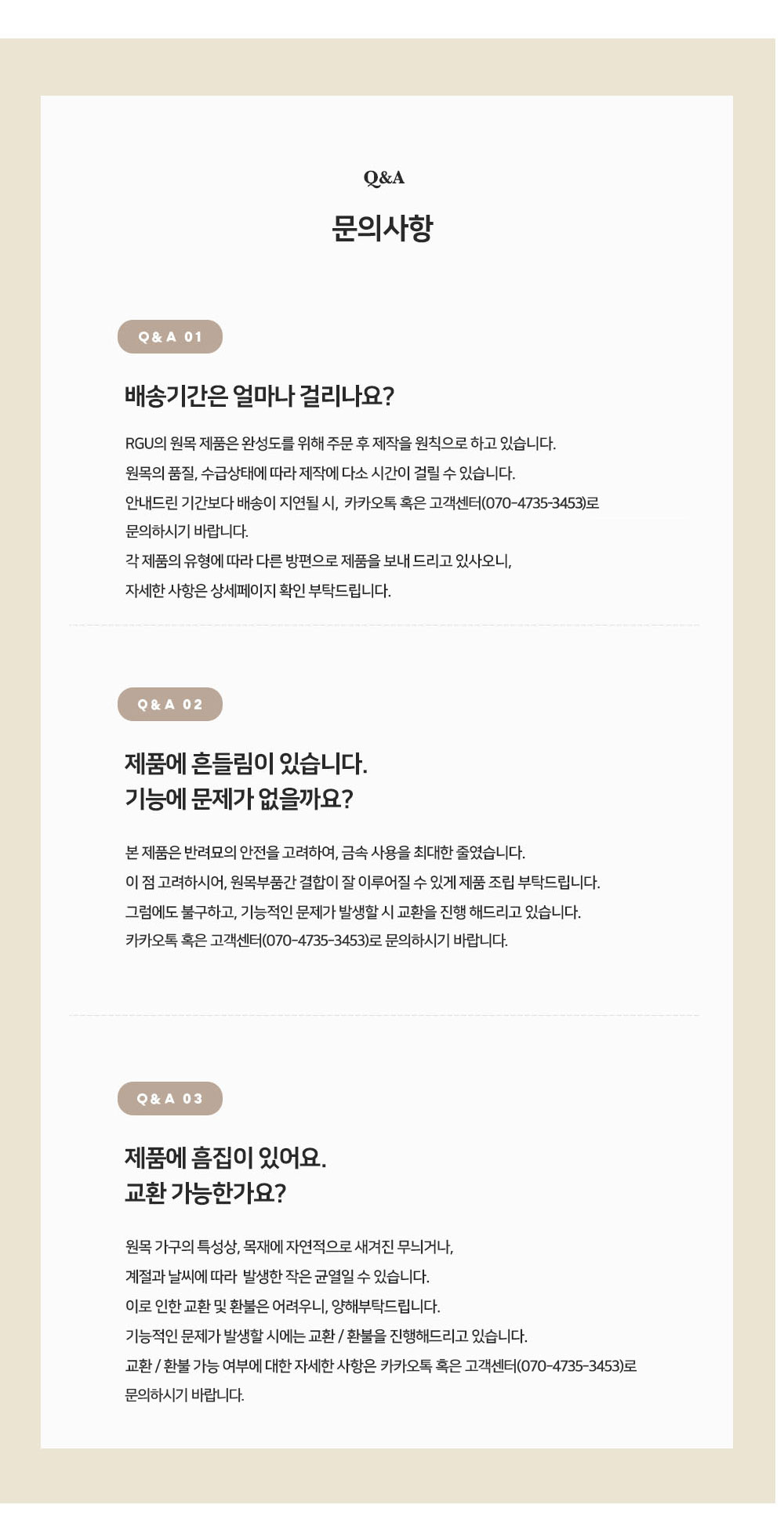 - 교환, 반품, 취소는 마이페이지 > 나의 상품 문의 게시판을 통해 접수 부탁드립니다.