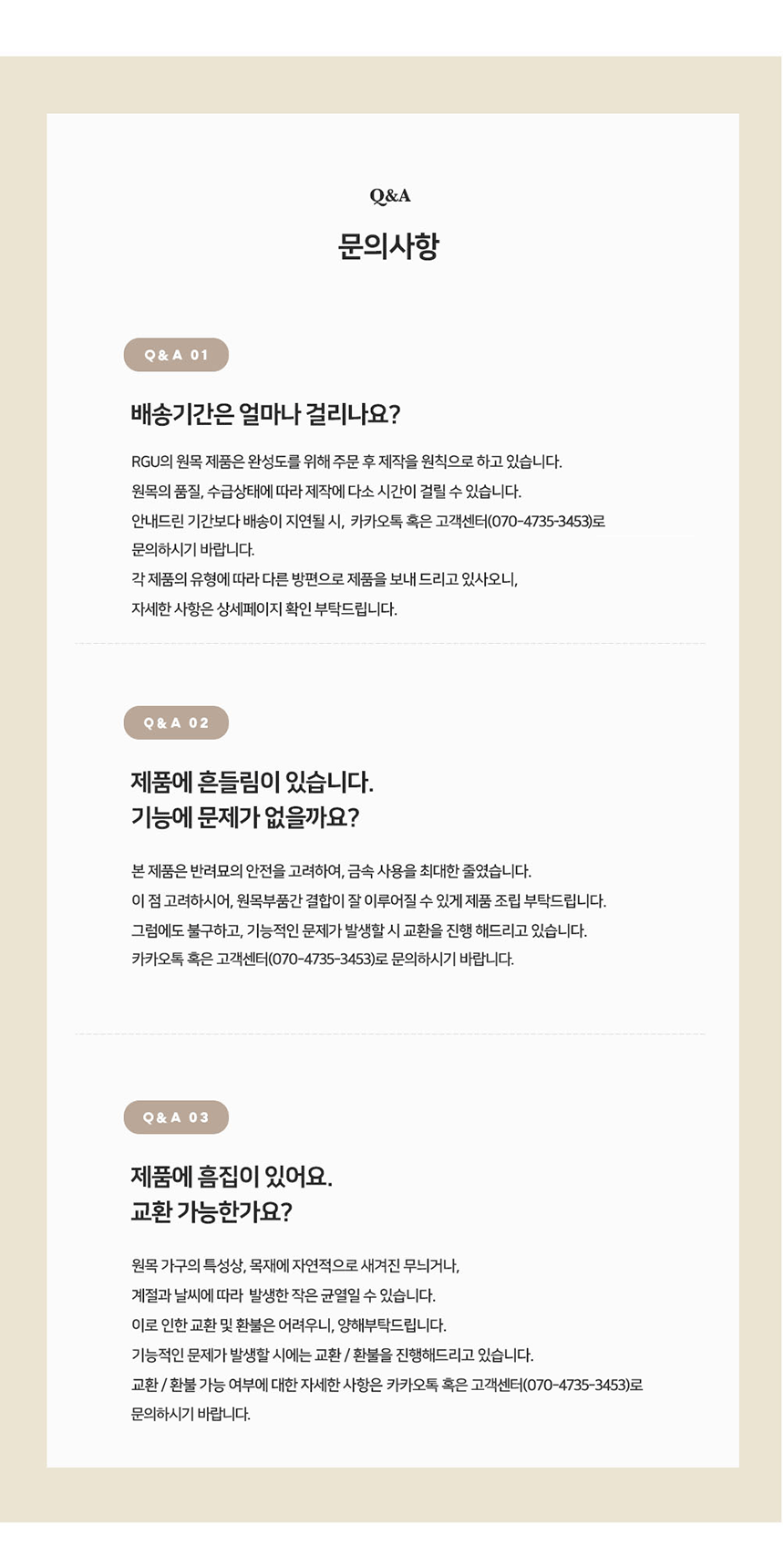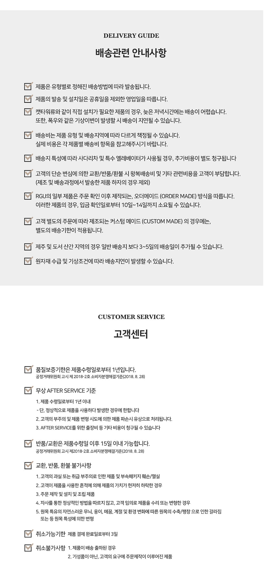 - 교환, 반품, 취소는 마이페이지 > 나의 상품 문의 게시판을 통해 접수 부탁드립니다.